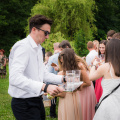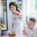 Někdo si potrpí na knedlíčkovou polévku podávanou děravou lžící, někdo musí krájet dort. A někdo se ráno pořádně protáhne, aby stihl civilní obřad, druidský obřad, všechny myslitelné soutěže a obyčeje, noční veselí a ranní koupání v rybníce, které z etických důvodů fotograf zaznamenal, ale nezveřejnil. Aneb „Svatba od kuropění do kuropění“.