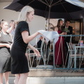 Ačkoli teploty odpovídaly spíše Sahaře, chrliče na budově radnice lapaly po dechu, tuhle dvojku (ve skutečnosti dvě a tři čtvrtiny), kterou dohromady svedla celnická uniforma, to před třeštěním u kašny nezastavilo. A protože celníci nejsou žádná ořezávátka, tak dokázali vyloudit úsměv i když jim krom pokynů fotografa pila krev celá jihočeská populace obtížného hmyzu.